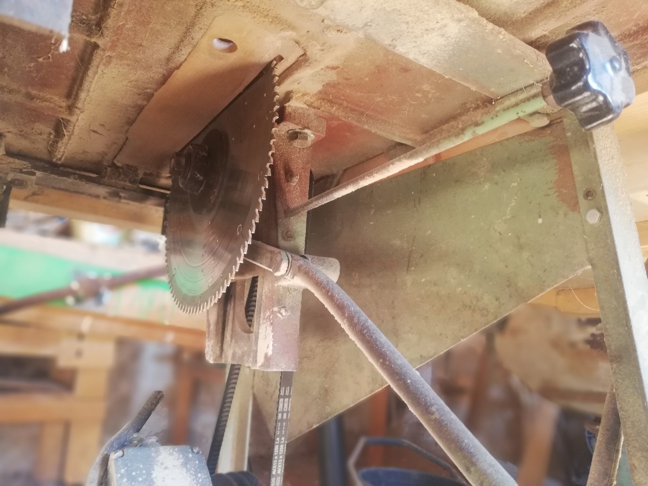 колега това е един винт който блокира механизма на циркуляра да се движи на долу и нагоре.Обаче пробвах с един болт навих го но не става явно болта ще трябва да е под конус.Питах в якоруда казаха, че нямат.ако някой има такава машина нека каже как е