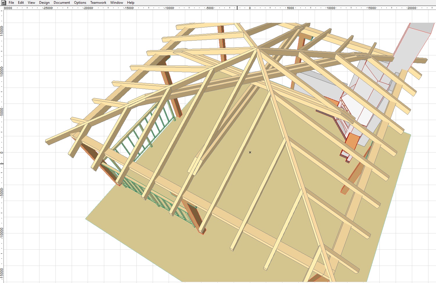 Иска ми се да избегна паянтите и след дълго изчитане на форума един от потребителите реши изпълнението с дебели „Т“ образни планки и мисля на средните колони да изработя точно такива поставени от вътрешната страна за да могат да хванат вертикалната греда , подпората и там където се срещат двете хоризонтални греди 120/120. 5 метрови греди се намират, но с поръчка и излишно оскъпяване. Срещуположните централни и диагонални ребра са хваната с двойни „клещи“.