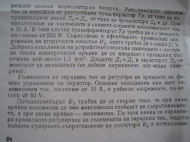 ditronix написа:Добре бе мама му стара,толкова труд си хвърлил,защо не направи схемата от следващата страница на книжката?С автоматичното изключване след приключване на зареждането?И този радиатор е излишен разход според мен,кутията като такъв е достатъчна (като радиатор).Я да се хванеш да спретнеш другото зарядно,искаш ли?Ще помагамЗареждах един голям акумулатор 120а/4,радиатора не се пипаше/с около 7, 8 А/.![]()