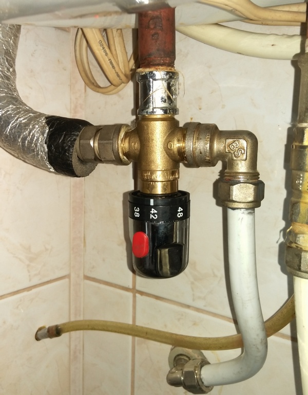 Тя всъщност идеята при мен беше да ползвам ето такъв термовентил едновременно за душа и бидето. Двете са на една стена.