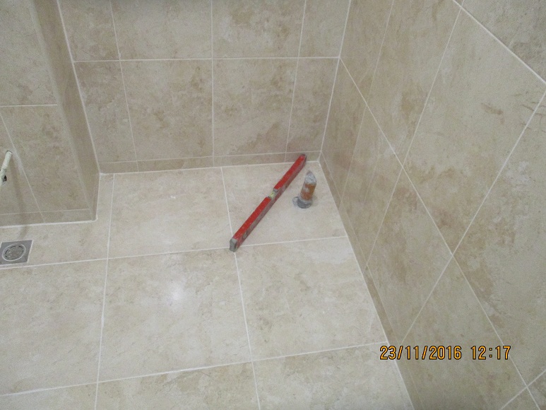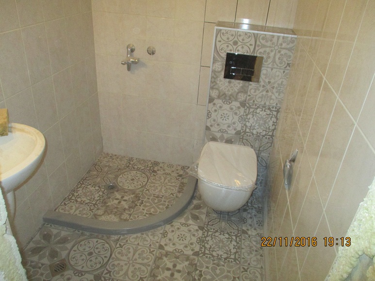 Засега предпочитам варианта - застъпване на първия ред стенни плочки над подови.