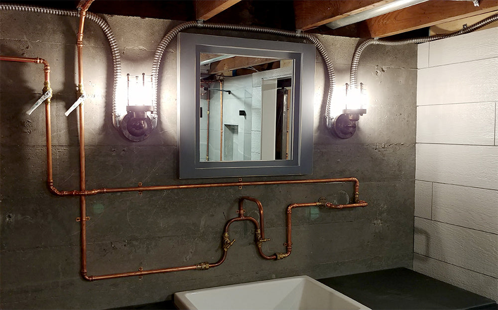 Можеш да сложиш външно тръби. Дори медни или от неръждавейка. Само да не пада температурата под 0. Леко индустриален стил, ама не чак толкова брутално. Така може тръбите да вървят високо близо до тавана и да слизат към батериите и тоалетната.