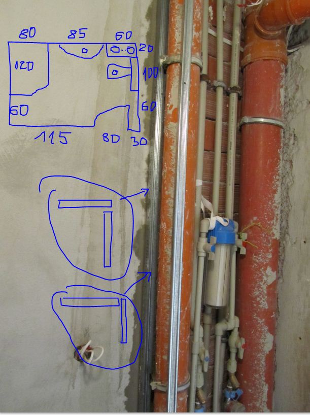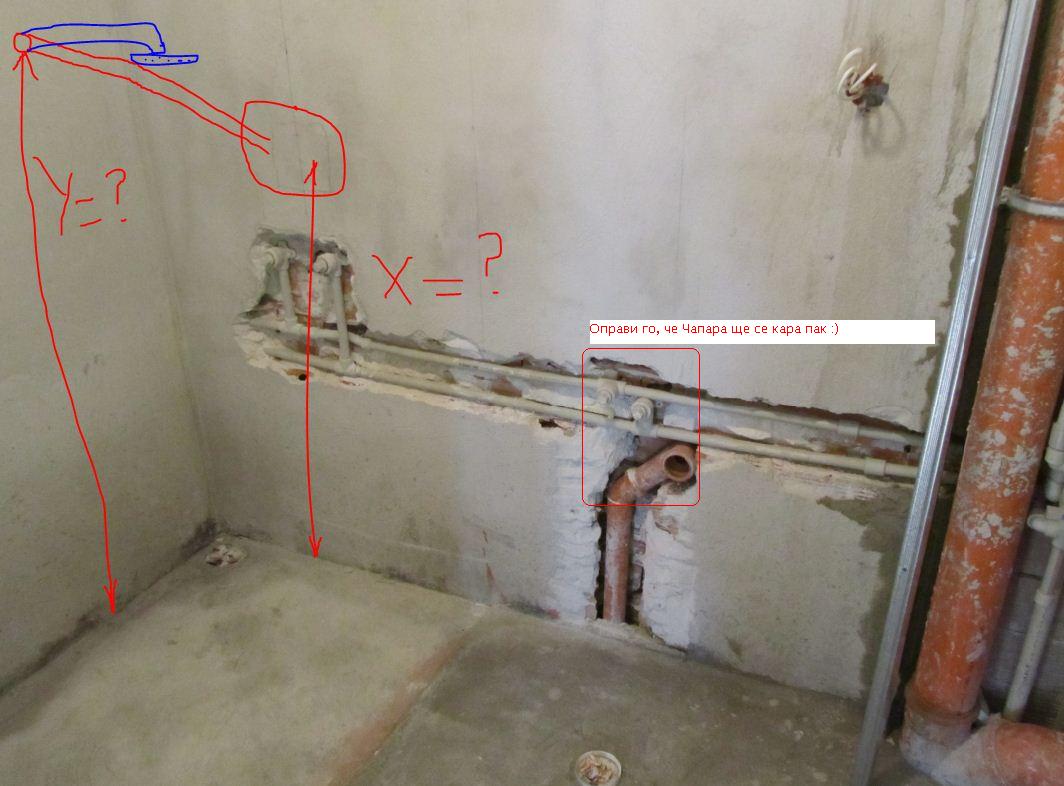 днес реших да подготвя стената за монтиране на вградения смесител.