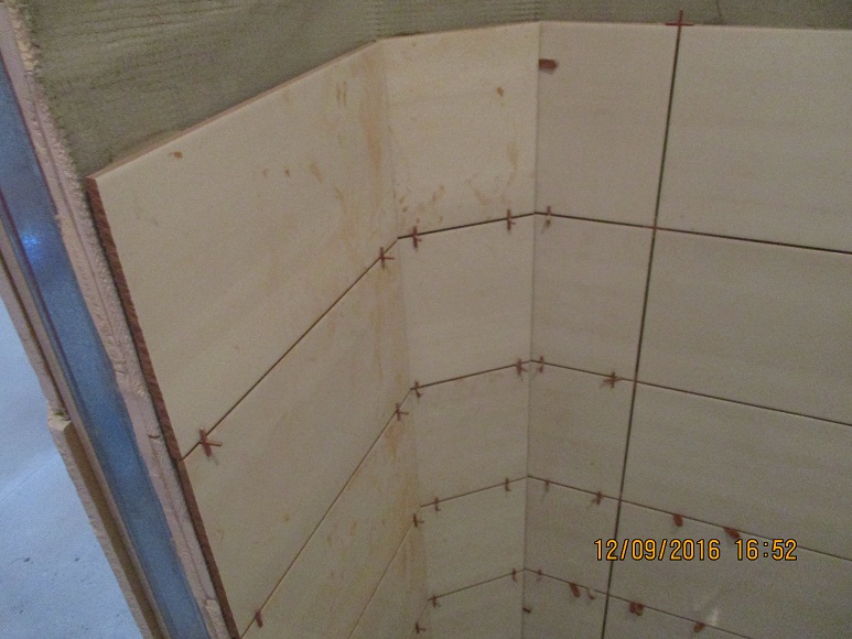 Става въпрос за тъпият ъгъл в душ кабината, в който има 2 метални лайсни, които са огънати и надрани + омазани със силикон.