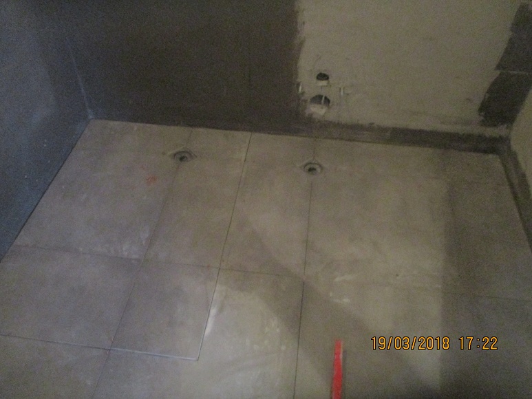 Или да е малко по-дълъг от размерите на плочка или плочките, за да могат крайните плочки да се надигнат заради наклоните и това да не влияе визуално на качество.