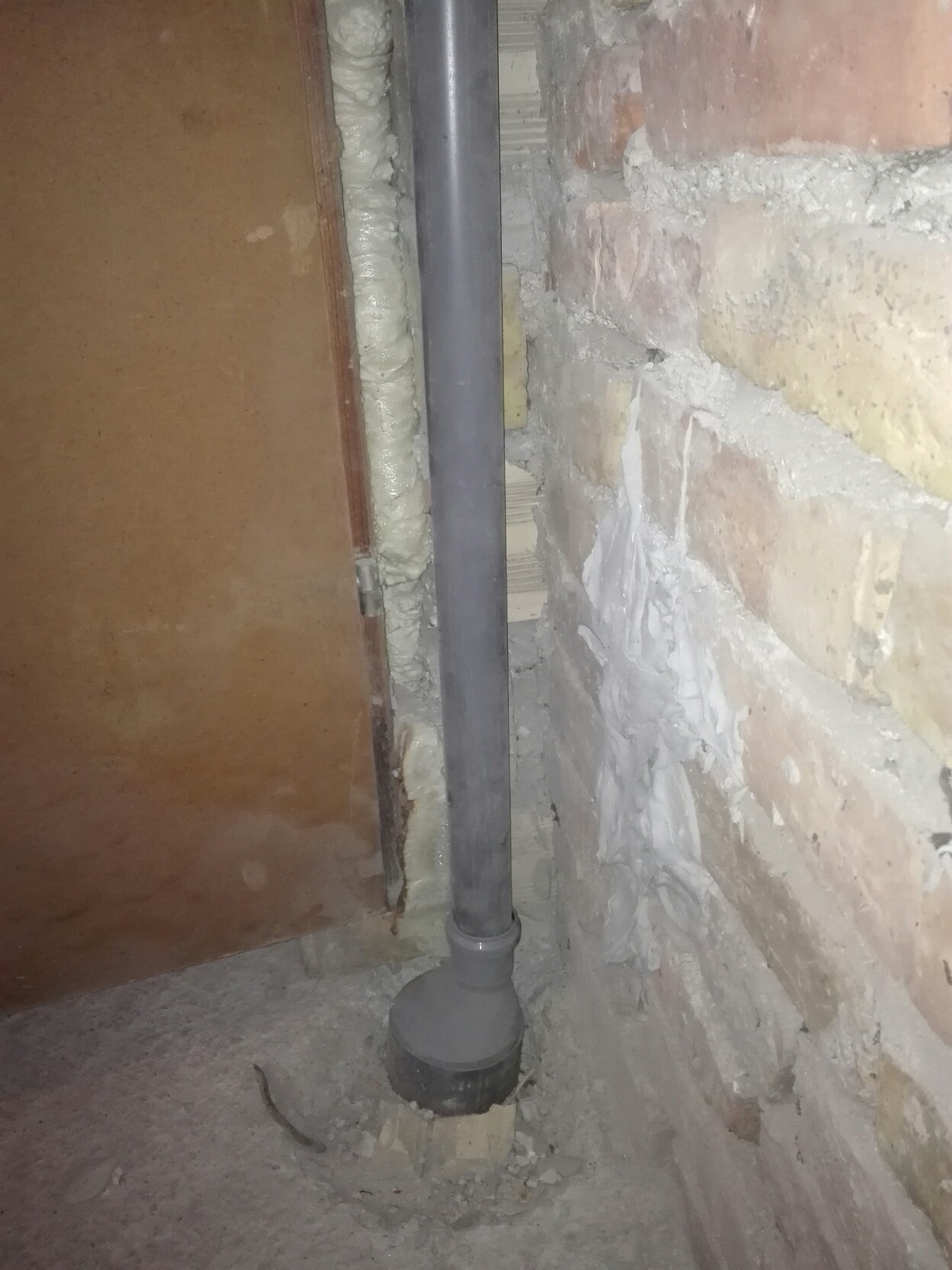 И понеже няма на къде да се мърда касата на вратата ,защото от другата страна е бетонна шайба ,а стеничката от страната на тръбата е тухла единичка и от другата и страна е вече направена тоалетната, и няма как да я отведа и вкопая в стената, реших да я намаля на ф50 :