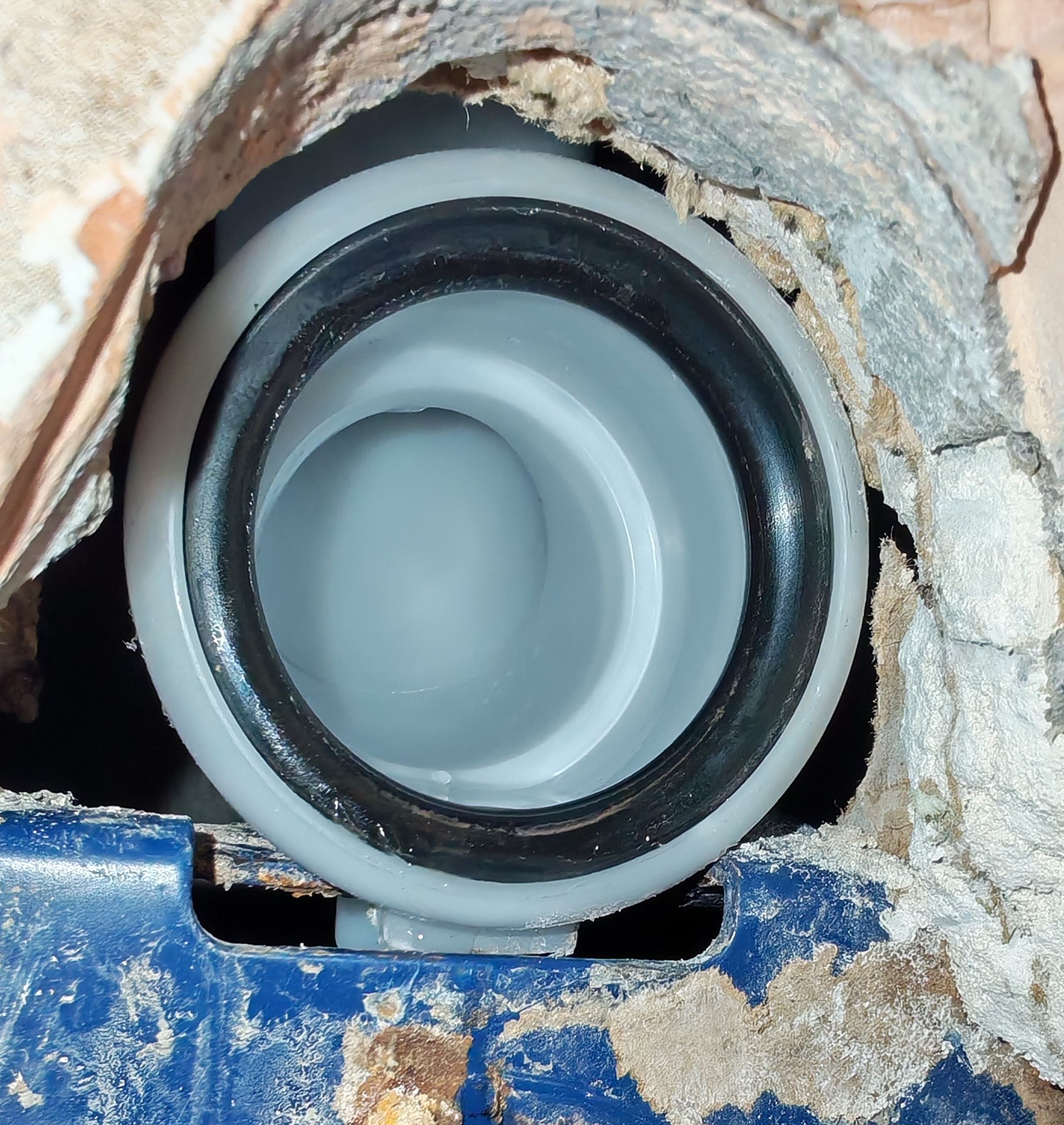 Тръбата от снимката от предходния пост изглежда фуниевидна, но не е. Може би от ъгъла на заснемане и ефекта на лещата. Тук се вижда че е цилиндрична, с леко разширение тип вътрешна фаска за по-лесно надяване към щуцера.