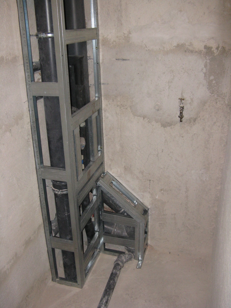 Както се вижда на снимката към надлъжните CD профили съм сложил напречни, които са захванати с парченца UD. За мен беше важно в зоната на отвора ГК да стъпи на профил и на четирите страни.