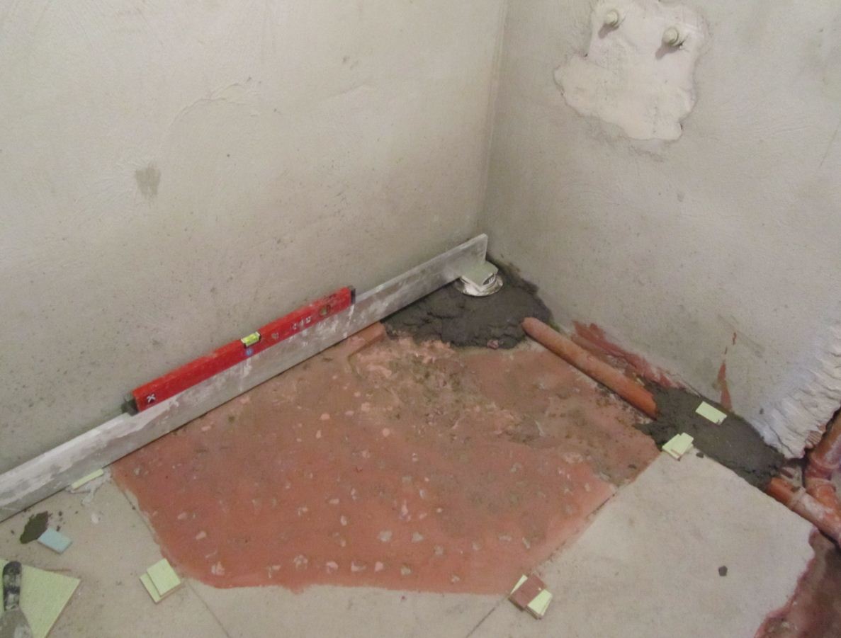 Фиксирах сифона в ъгъла и обезпраших пода, доколкото това е възможно и след това минах с бетон контакт: