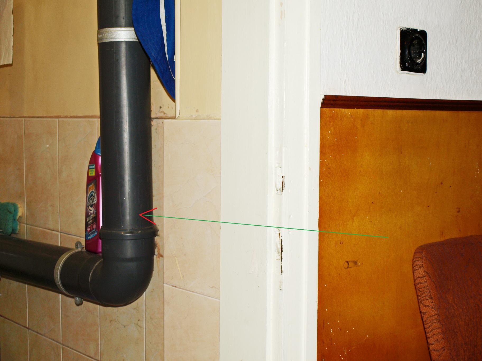 ЗДравейте искамда попитам ,ако заустя мъркучът за отходната вода от перялнята директно към канализационната тръба , ще връща ли миризма към пералнята. Както съм показал на снимките с зелена стрелка ще е пътят на мъркучът от пералнята . Налага се така защото пералнята ще е извън банята -вънка в коридорът , и ще пробивам около касата на вратата.