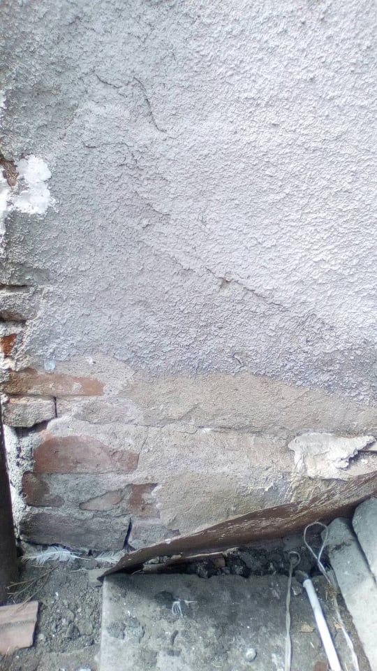 Eто малко снимки.Ясно се вижда от лявата страна пукнатината. На първата снимка се виждат тухлите долу почти до земята дали има основа,трябва да се копае.Вижда се и плочата отгоре.Аз мисля да и сложа една колона.Това е за сега.