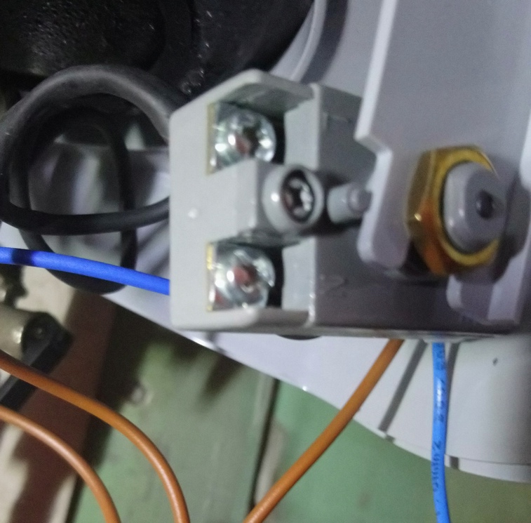 Заземяването към жълтозелените кабели. - Даже за 3 възможни точки. Отляво , отдясно при другите 2 и на гайката - все едно да е здраво стегнато.