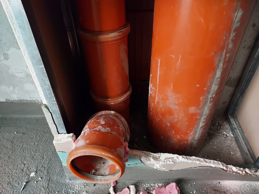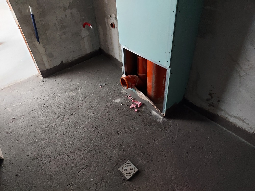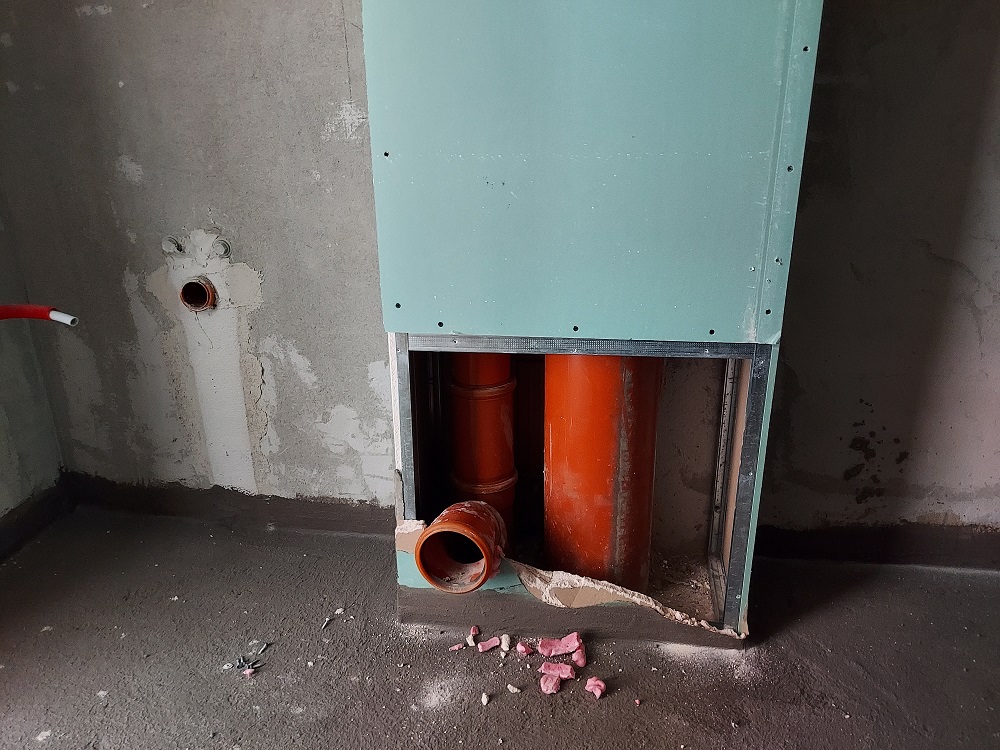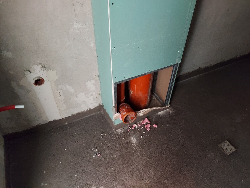 в новозакупен апартамент тръбата за тоалетна е изкарана на доста неподходящо място,