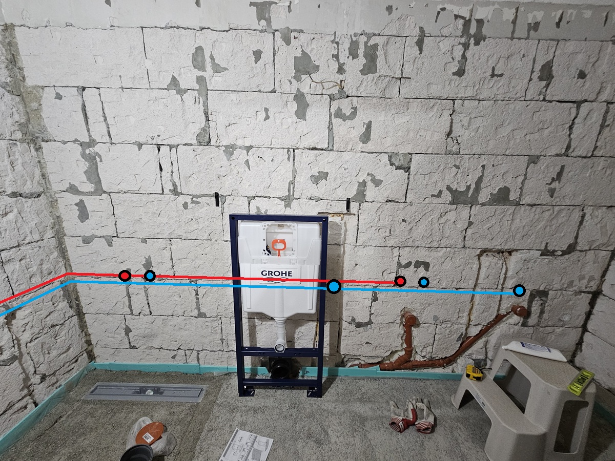 На снимката съм нарисувал горе-долу изводите за вода, но разстоянието от пода все още го уточнявам.