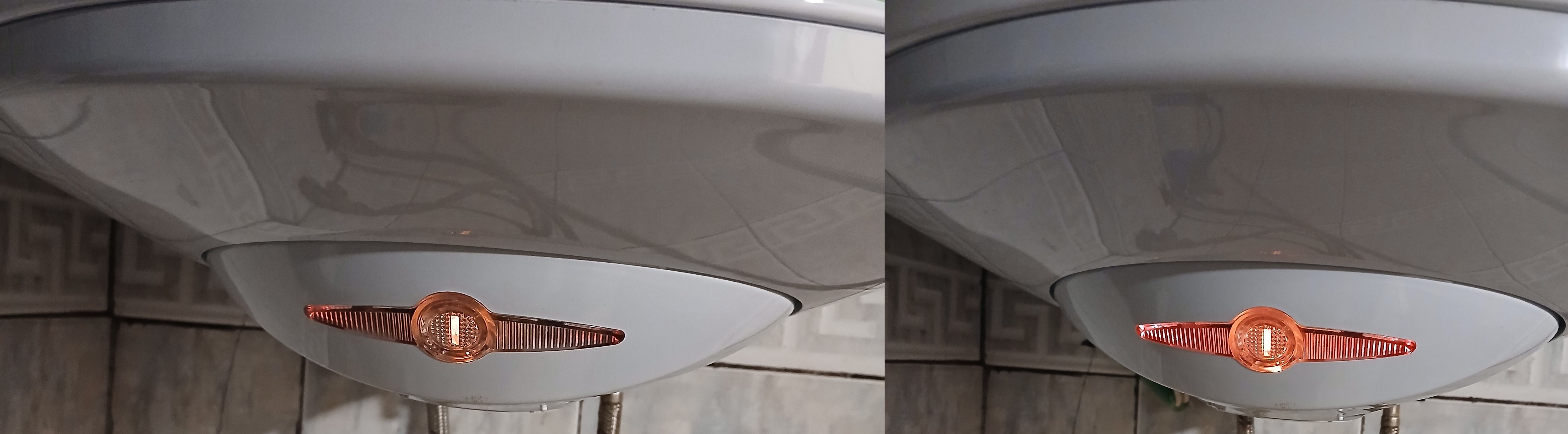На първата снимка бойлерът е изключен от копчето, на втората е включен.