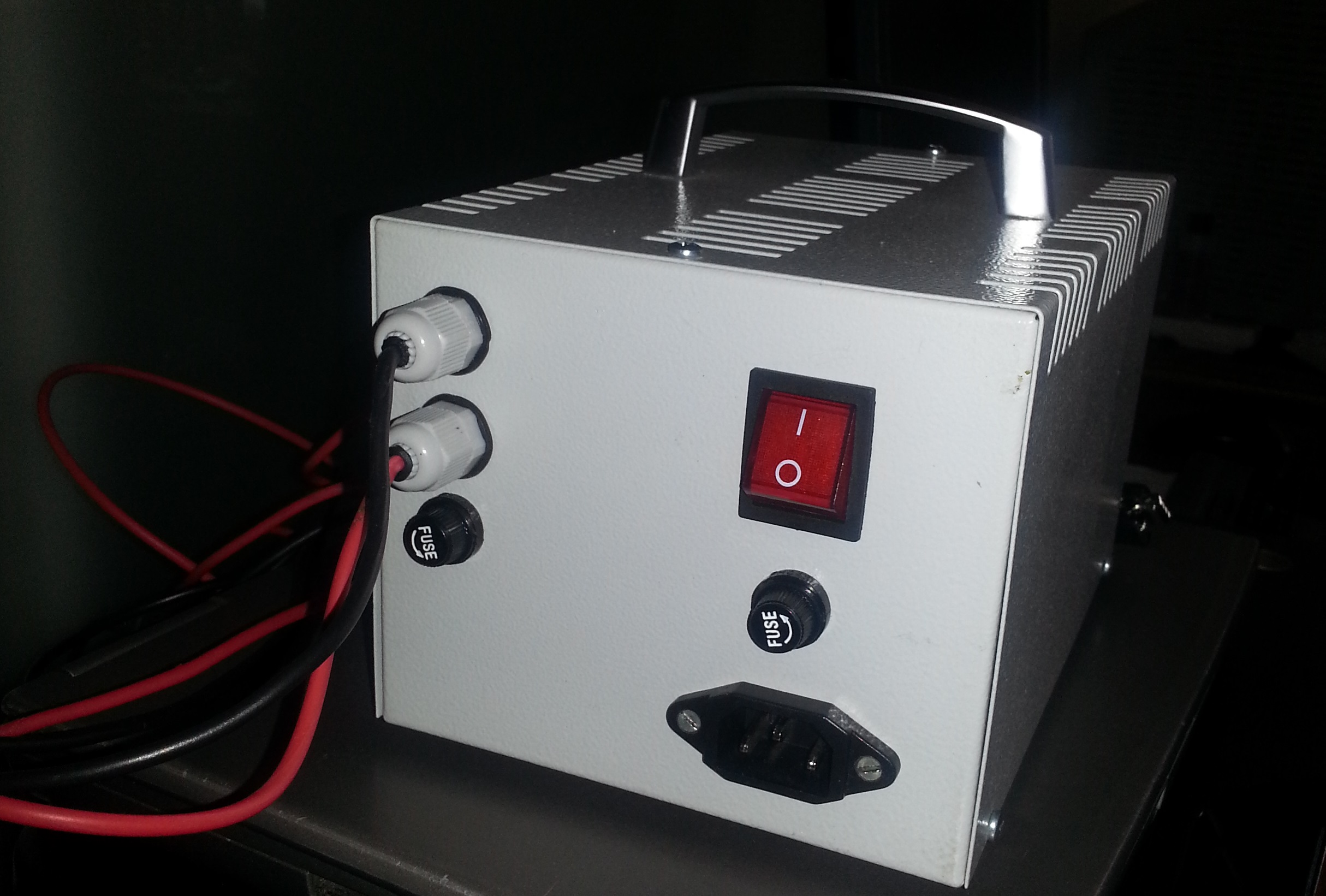 За кутия използвах корпуса на повреден руски осцилоскоп САГА.Батариите ги поставих за захранване на ампер и волт-метъра.Колеги които са ползвали панел-метри на базата на ICL 7106 знаят , че са много чувствителни към захранване от мрежата.Имам няколко неуспешни опита да ги захраня през изправител,затова където ги ползвам ги захранвам с една 9V батерия.На едно лаб. захранване са вече повече от 2 години без да сменям батерия.