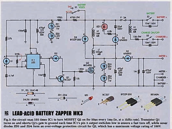 Попаднах на тази схема за десулфатизатор на акумулатор: Забелязвам, че положителният пик на импулсите е по-голям от отрицателния.