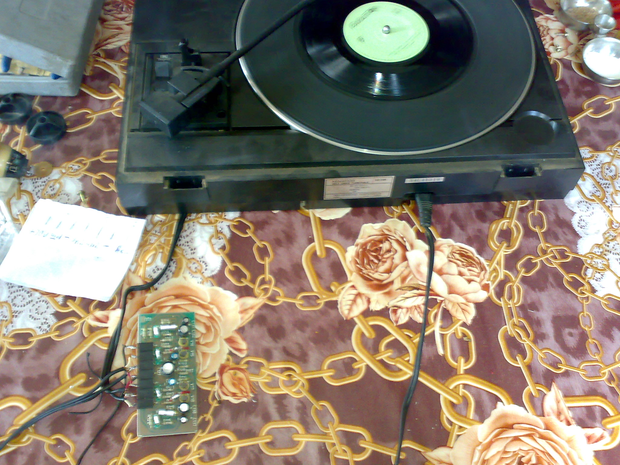 . Предварително свързах всичко ,, на сухо", пробвах го с една система ,, Техникс" и о чудо- силен и чист звук. Захранването при работещ грамофон показа 19 V. Разглобих го и заедно с другата платка ги закрепих в грамофона- място бол. Сега мама има да слуша над 200 плочи- от приказки до техно и хард от 80-те години