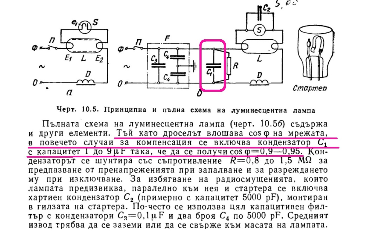 В луминесцентните тела от едно време слагаха едни големи кондензатори директно свързани към захранването.