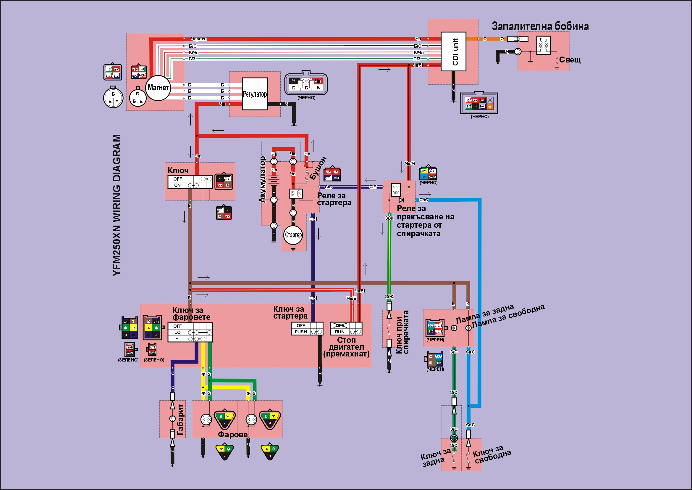 http://www.regulatorrectifier.com/catal ... r-CDI-Unit но търся вариант да се осигуря, че няма да го купя, а после да се окаже, че е било излишно. Слагам и схемата на АТВ-то, ако може да помогне нещо. Като дам на контакт на червено-черния кабел си идва +. Не знам като въртя със стартера дали ще се покажат някакви токове от магнета, за да мерна и него дали е наред.