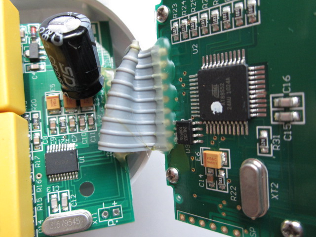 И защо да не може да изпълнява ролята на батерия някой кндензатор? Имам мултицет, който се захранва точно от кондензатор. Държи си заряда с месеци, като спадне напрежението се зарежда или с напрежение 9-15V прав ток, или директно в мрежата. Отделно от това, възможно е данните да се въвеждат в енергонезависим чип-памет. А преди много години в Соди девня имахме клетки памет за данни, събирани от различните прибори, които бяха просто качествени точни кондензатори 10uF. Та спокойно паметта може да бъде кондензатор, вече е друга работа какво се е случило с нея. Я кофти елемент, я дефект в платката. Та на последната снимка до процесора се вижда чипчето памет- 24LC03 доколкото виждам и до него- един електролит 10uF - доколкото го виждам