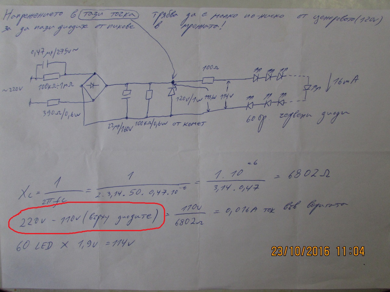 Целта на задачата е червените да светят постоянно, белите да мигат, и всичко това свързано директно на 220V.