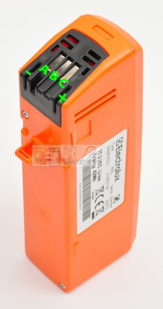 - правилния ток 32-35V идва по конектора на прахосмукачката "C" но батерията от него не се зарежда