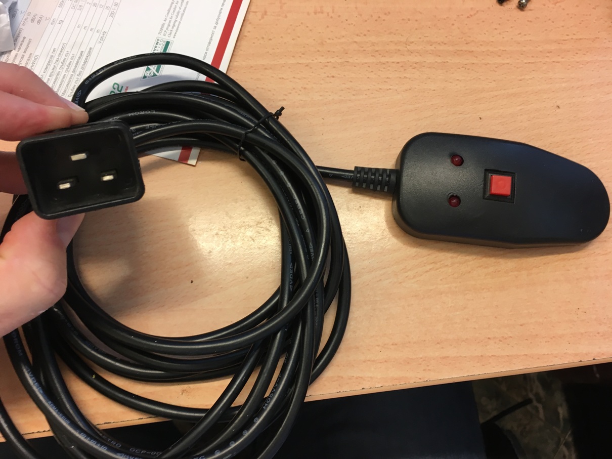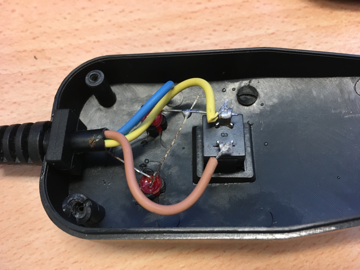 Дистанционното което имам е с два светодиода за индикация ,и като видях вътре самото устройство стигнах до извода че е на 220 волта, и тези светодиоди ще ги заменя с една глим лампа на 220 волта, която си набавих. Имам и куплунга който ми е нужен да сменя на кабела за да го свържа към машината за дим.
