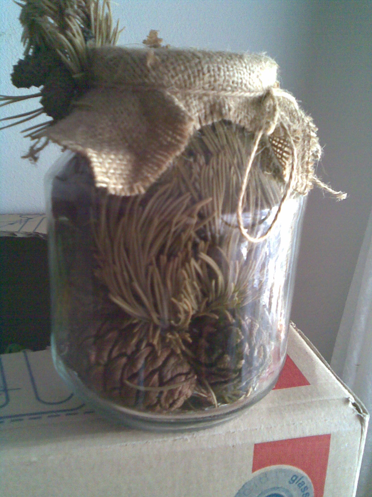 напълни я с различни неща /камъчета ,шишарки,и каквото ти хрумне и след това можеш да я просветнеш с някое лед лента,или малка лед крушка ,мисля че ще стане симпатична нощна лампа за под на хол ....
