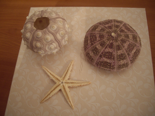 Здравейте.....скоро бяхме на моренце и там сред купищата морски нещица на безбожни цени, намерих три неща, които веднага реших как ще уползотворя. Едното е от морски таралеж...другото е пълна загадка за мен...дори и продавача не знаеше....от познат разбрах, че в Гърция ги имало много, но не знаеше как се наричат и третото е морска звезда. Като ги съчетах се получи много красива гъбка, която мисля да направя на лампичка. Просто ще сложа една лампа отдолу..не свещ, защото свеща ги обгаря. Въпросът е дали лампата да е на батерии или към мрежата. Но за сега съм ви я снимала със сложена свещ отдолу. Много е романтично на тъмно..с тези множество малки отвори. Дано да ви хареса.