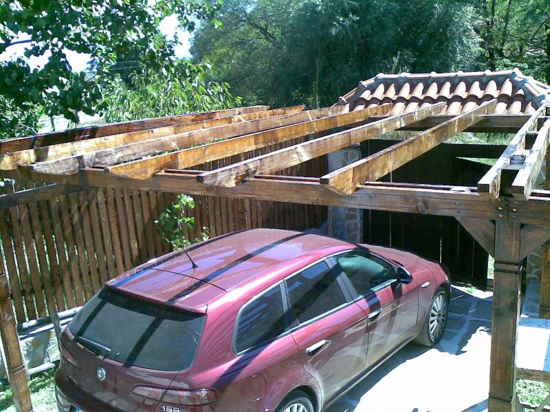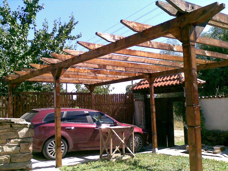 Това са още една - две снимки на асмалъка в предното дворче, който реално е една прегола и докато ми пораснат асмите мисля да покрия с някаква тента. Обмислям няколко варианта, като май ще се спра на варианта със зебло. Някак по-естествено ще изглежда. Ивици зебло с еднаква ширина ще бъдат опънати надлъжно на цялата конструкция, като ще минават под и над напречните греди.