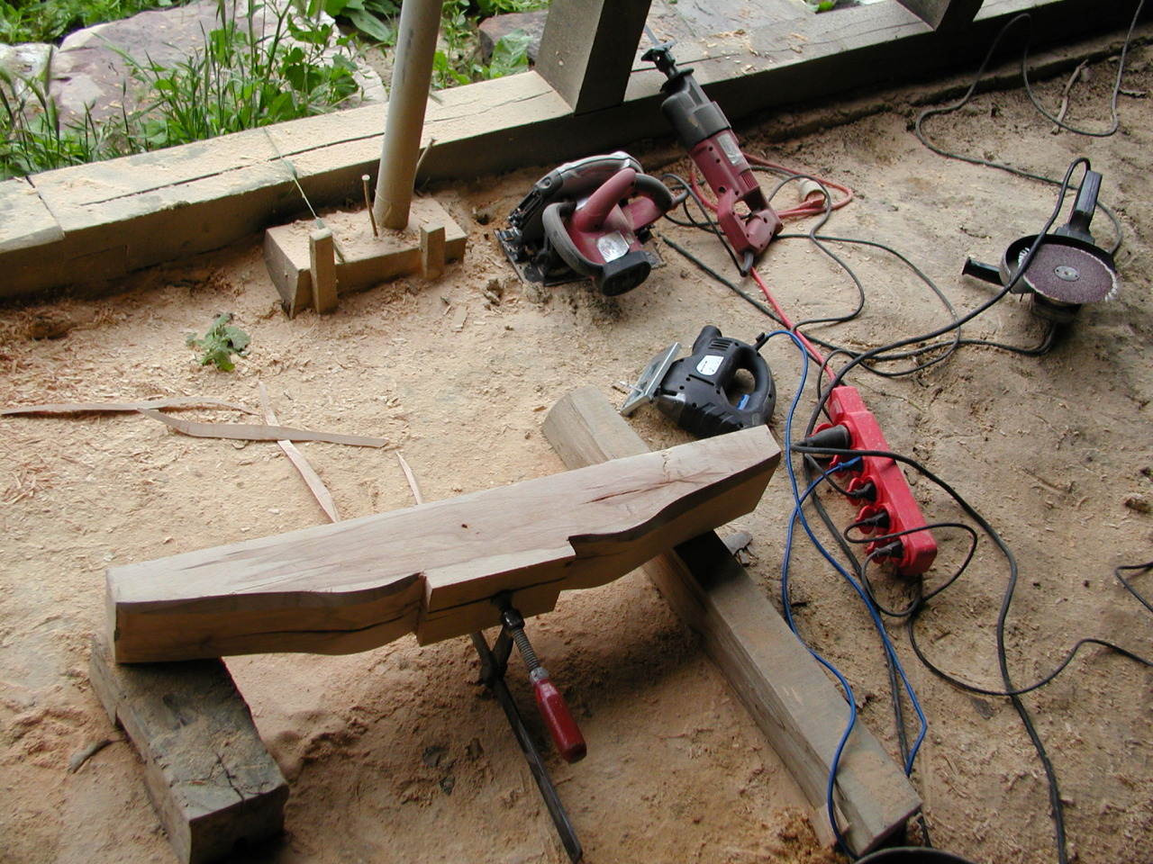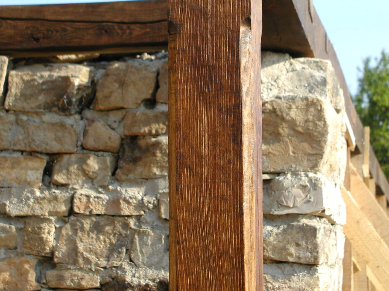 Част от обработката е и мазането на дървото. Но нека не ви лъже хубавия вид на снимките. След месец, от това не остана и следа, още повече, че беше бистро масло от двигатели на газ. Дървото стана избеляло сиво-кафяво. Наистина изглеждащо старо и трудно за определеяне на каква възраст е. По-нататък може би ще се види на тази-годишните снимки.