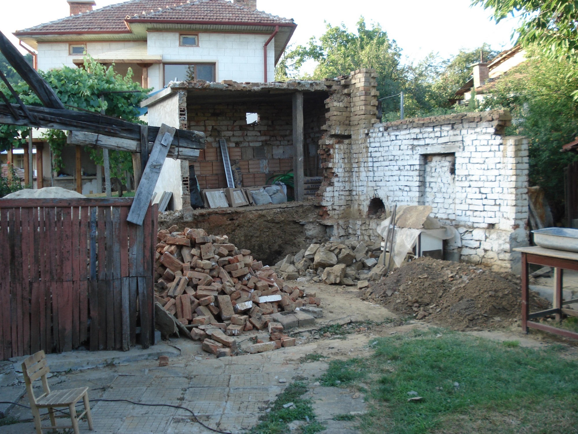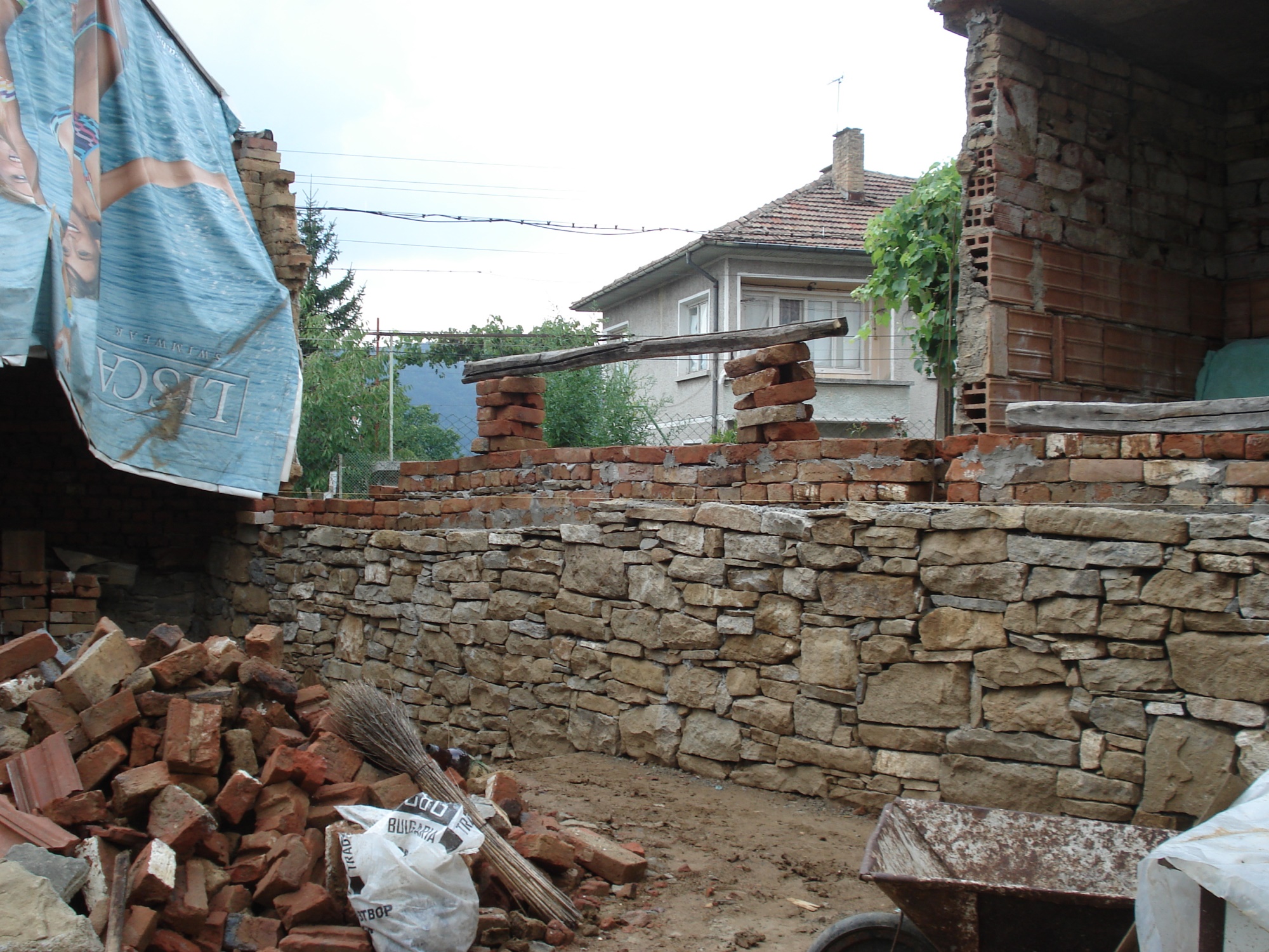 реших да съживя темата. Междувременно видях, че модераторите са я преместили в друг раздел. В няколко последователни поста ще кача снимки, онагледяващи развитието на "проекта". Единствено за реденето на каменния зид съм ползвал майстор. Останалото съм направил сам, разбира се с помощници-родата.