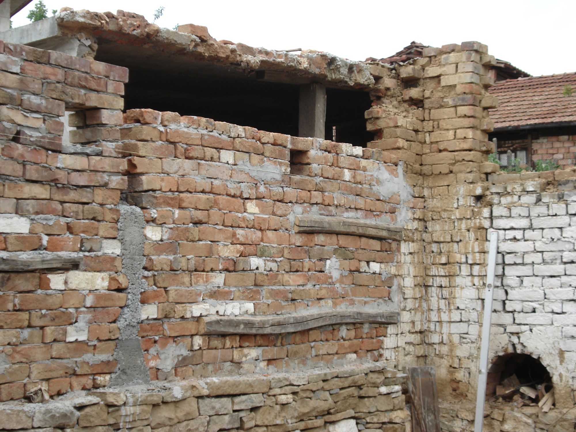 Единия скат лежи на тухления зид, другата - не. Да, проблема на хлътването е, че са се разтворили гредите от конструкцията. Но мисля, че голяма част от проблема е и зидът, тъй като има големи пукнатини и е станал неустойчив. Фантазия имам и то голяма, шъпросът е в парите. Имам наблюдения на такива изпълнения които казваш, даже по едно време се замислих дали да не оставя височината и двускатния покрив, след реконструкция де и да стане по начина който казваш. Но.....Инвестицията ще е голяма. Elenas какво решение предлагаш за зоната между старата част и новия едноскатен покрив, зоната с червено на проекта, ако го правя по първоначално предложения начин.