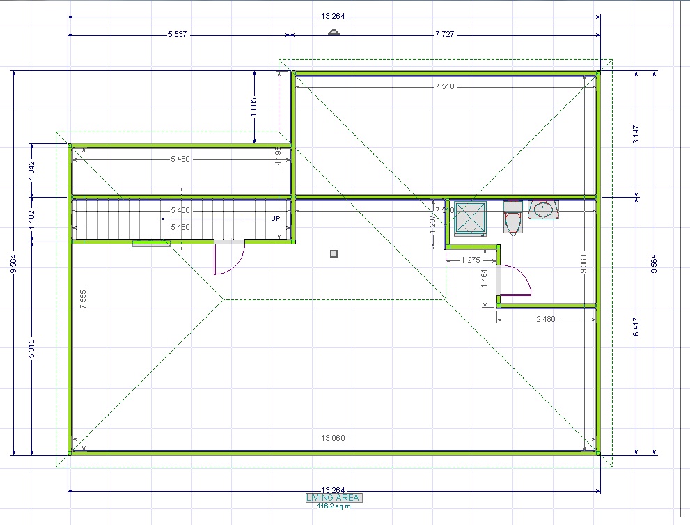 На другата схема бях сложилл банята и тоалетната в чупката, там, където при мен стената е в синьо. Което ме наведе на мисълта, че е редно да кажеш къде ти е севера. Щото- не върви на южната ти фасада примерно- да ти сложим банята и тоалетната, да речем.