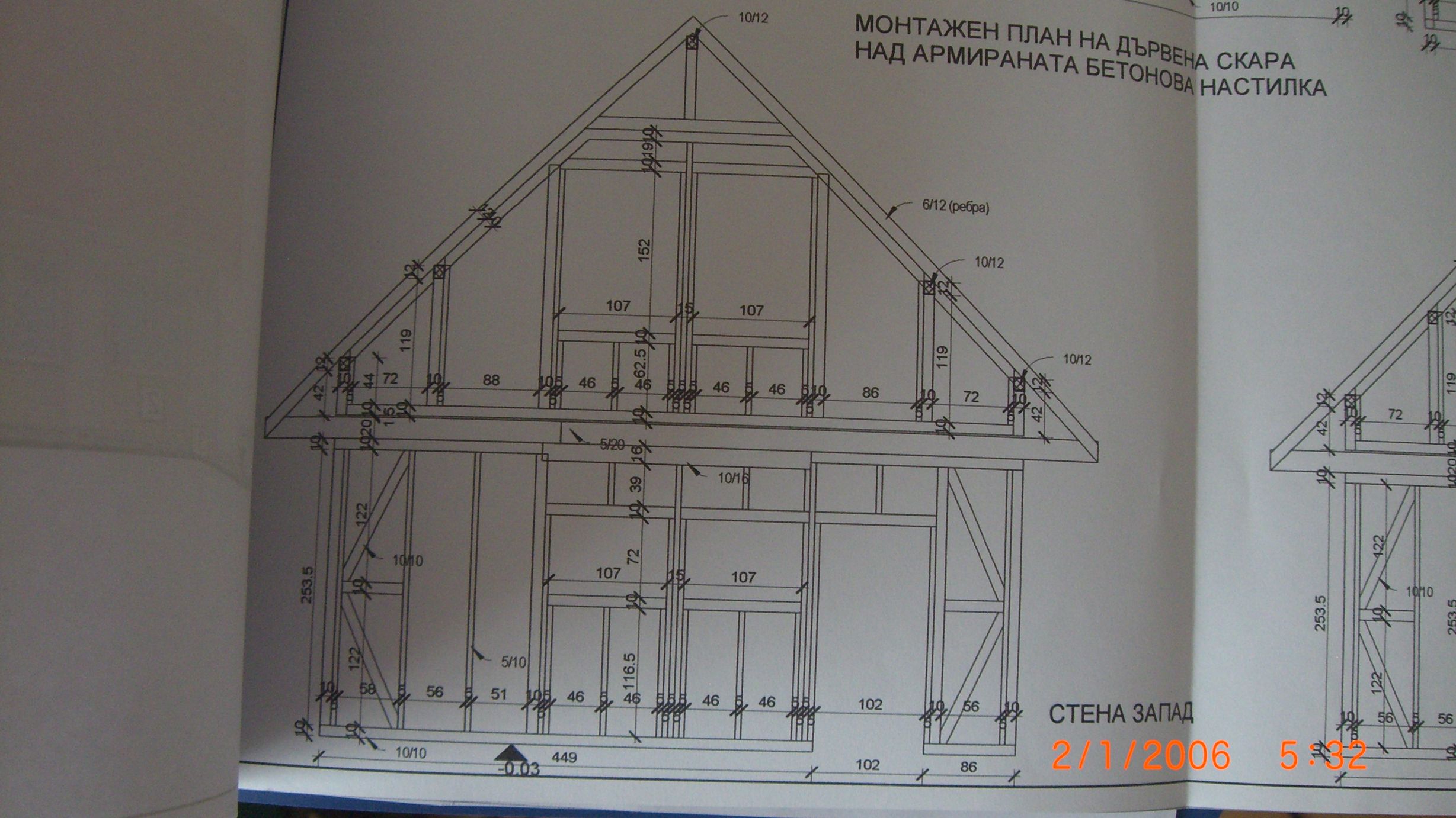Неговият проект е "класически" за дървена къща в България. Подобен на timber frame конструкциите - по-големи сечения вертикални подпори, през по-големи разстояния, опаянтени. Не знам обаче защо при това положение не се правят диагоналите от дървен материал.