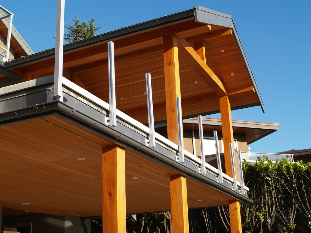При мен парапетите са захванати в плочата, наклоните са подведени със замазка, после хидроизолация, после финишно покритие по твой вкус (но не теракот). По периферията на козирката/терасата има улуци, а под улуците (на долния ръб на плочта) водооткапи за да не подлизва под козирката и да не се подкожушва мазилката.