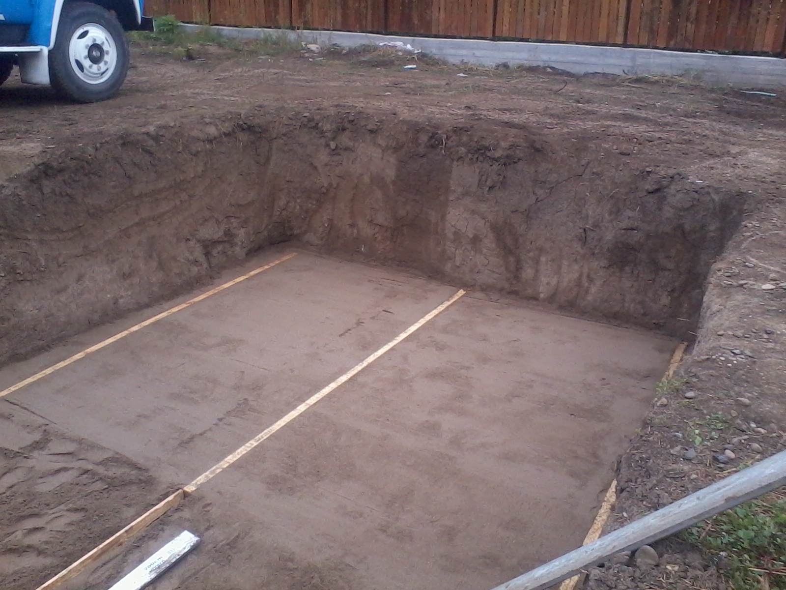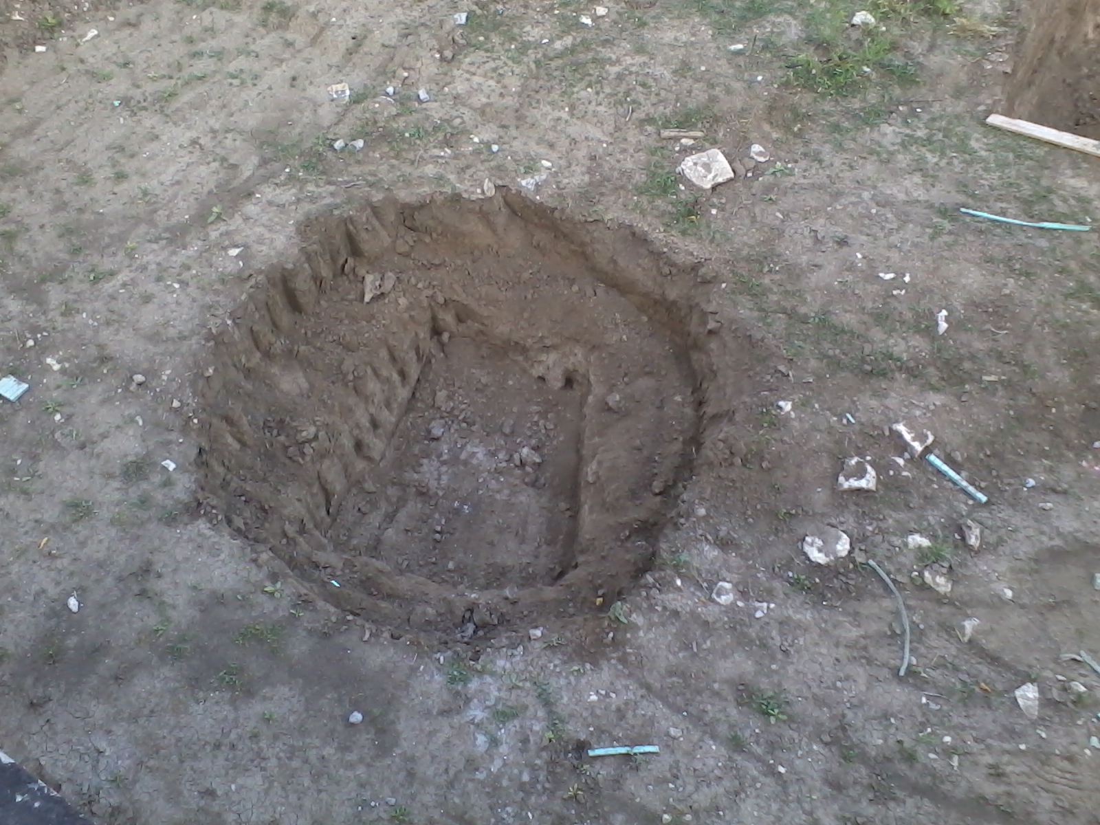 Басейна е от http://www.baseini-peters.com .Готова отливка от стъкломат.С багер изкопахме траповете,после подравних с баластра и пясък: