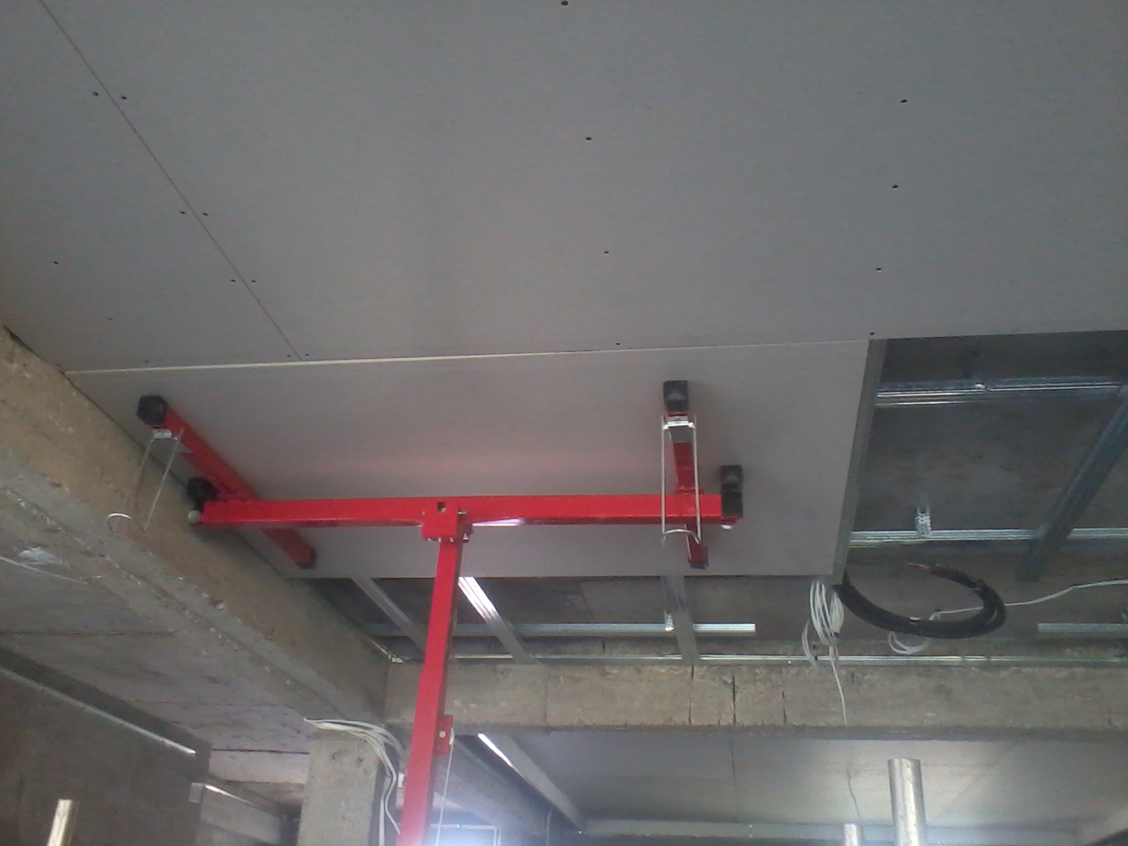 Слагай CD през 50см!!!ще ти провисне картона.А като си решил да слагаш два анкера,слагай ги в дуките.Така вече няма възможност да провисне окачвача.