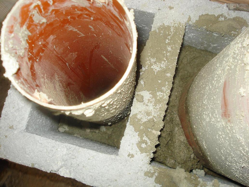 Друг вариант който съм мислил и прилича на твоя, е използването на цилиндрично картонено руло за кофраж отвътре. Шпулите от винил са много подходящи и има различни диаметри. Само трябва да се помисли, как да се промажат и сцепят предварително, за да могат да се имчкнат след това по-лесно.
