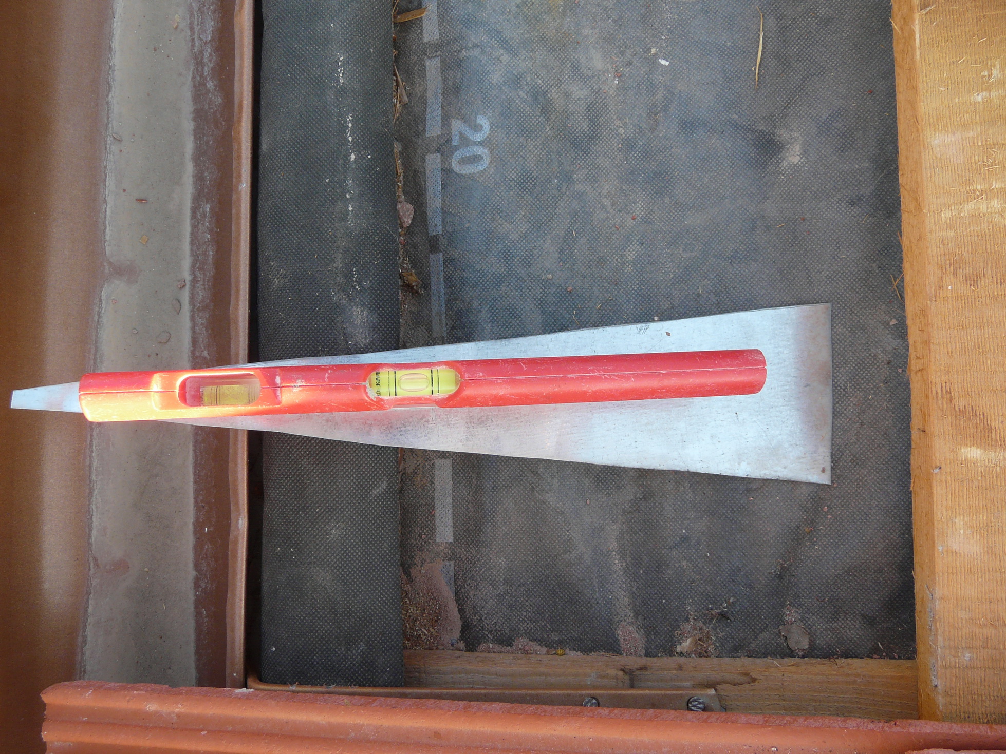 Замазката се прави под мушамата и така скосените летви ще легнат отгоре и така ще има съвсем лека промяна в наклона на керемидите и малко по-голямо намаляване на наклона на мушамата ...