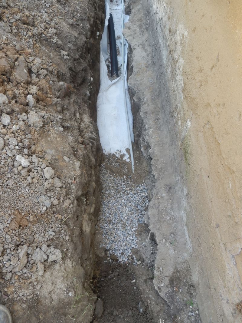 P92014451.jpg Сложих геотекстил 150 грама/кв.м и двуслойна дренажна тръба с перфорация само в горната част /свода/