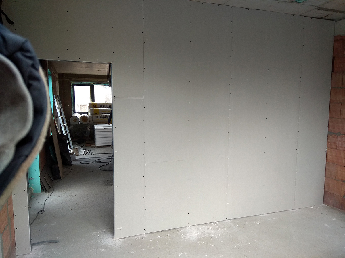 Неочаквано нахлуха гипсокартонаджийте и вдигнаха първата (половин) преградна стена: