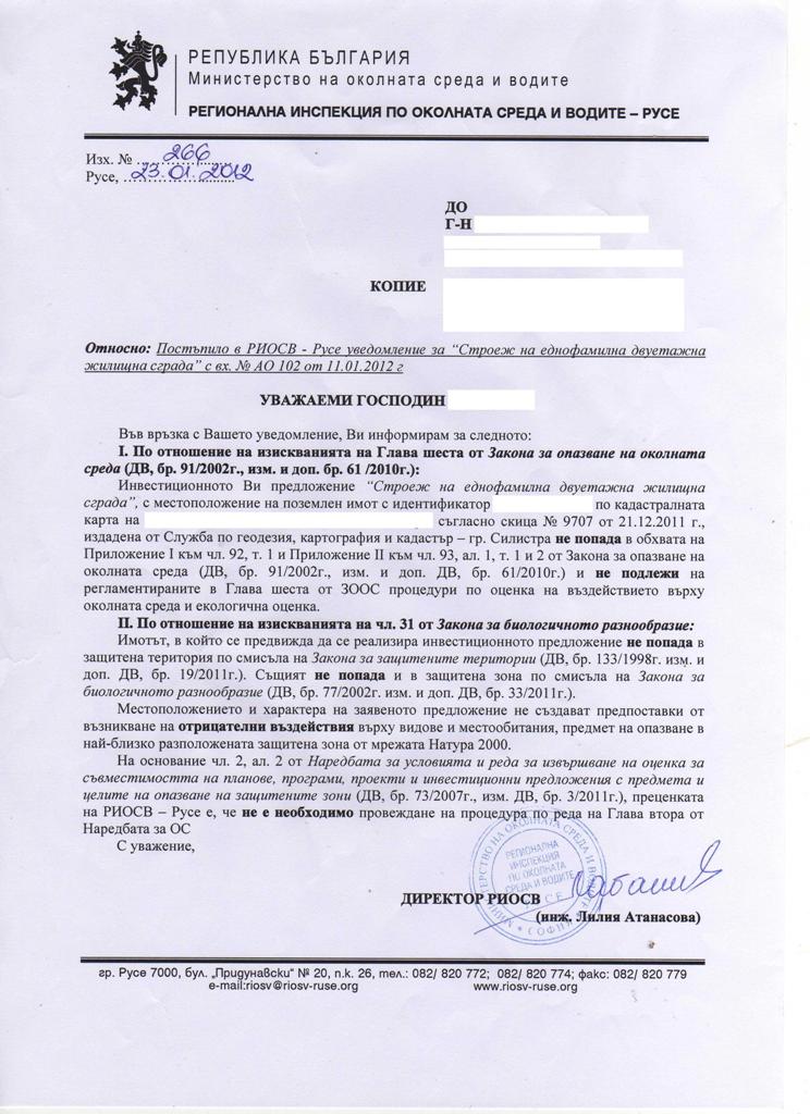 Вчера бях в РИОСВ. Обясняха ми, че уведомлението до тях е задължително при какъвто и да е строеж. Прилагам документа за да се види за какво става въпрос.