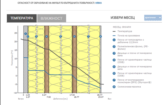 Иначе ето ги характеристиките на такъв вариант (20см слой вата 45кг/м3):