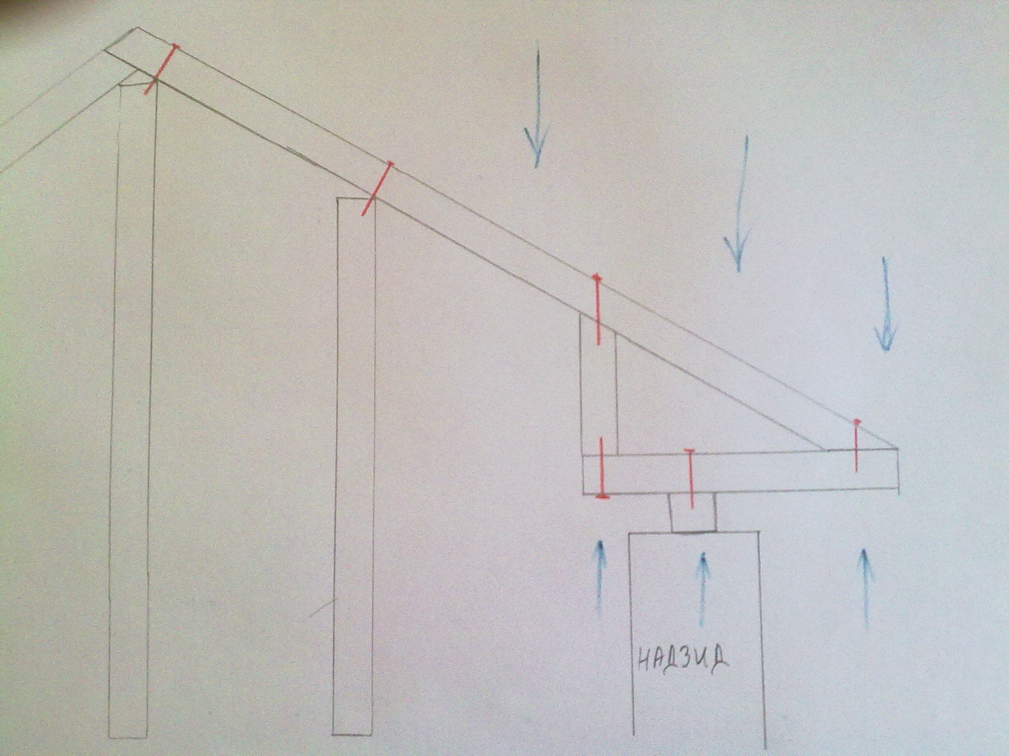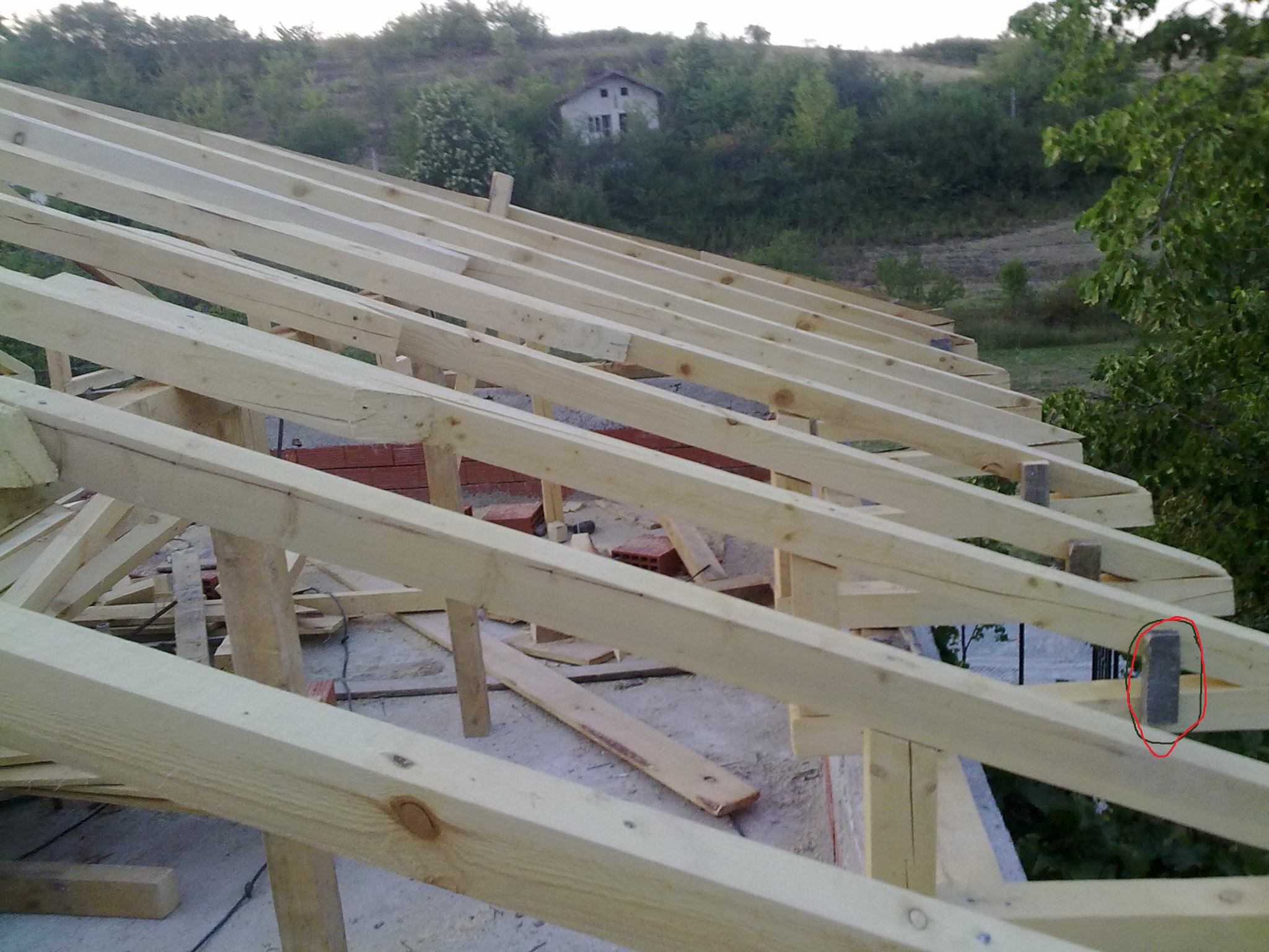 Въобще, имам доста критики към тая дървена конструкция, въпреки че не съм специалост по покривите. Извикай си някой точен майстор да ти каже как да си я оправиш...