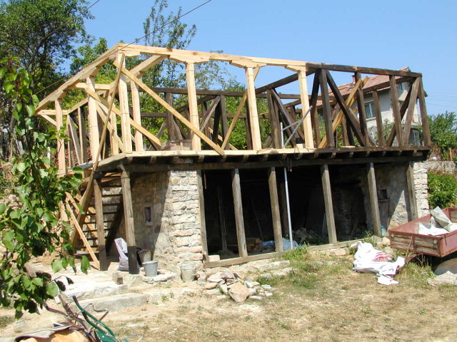 И така, тръгнах нагоре. Първо направих пояса от греди, в-у който ще стъпват вертикалите и паянтите. От долната страна направих фалцове, така че частично да застъпя дюшемето. Сглобките се виждат от снимките. Отново обилно използвах винтове за директен монтаж.