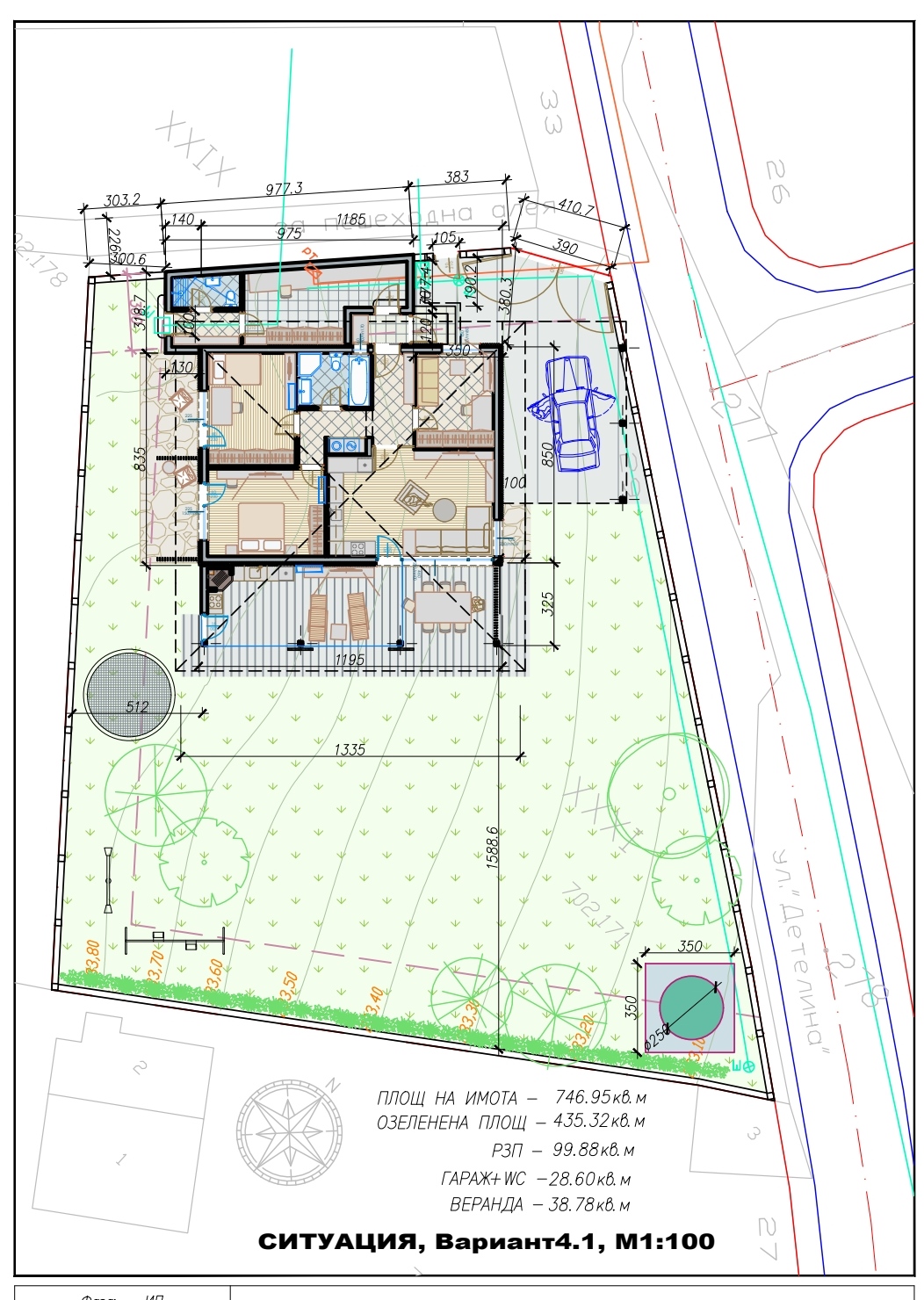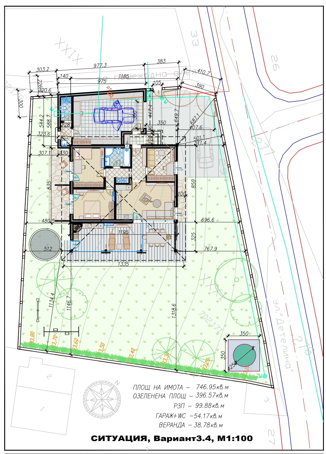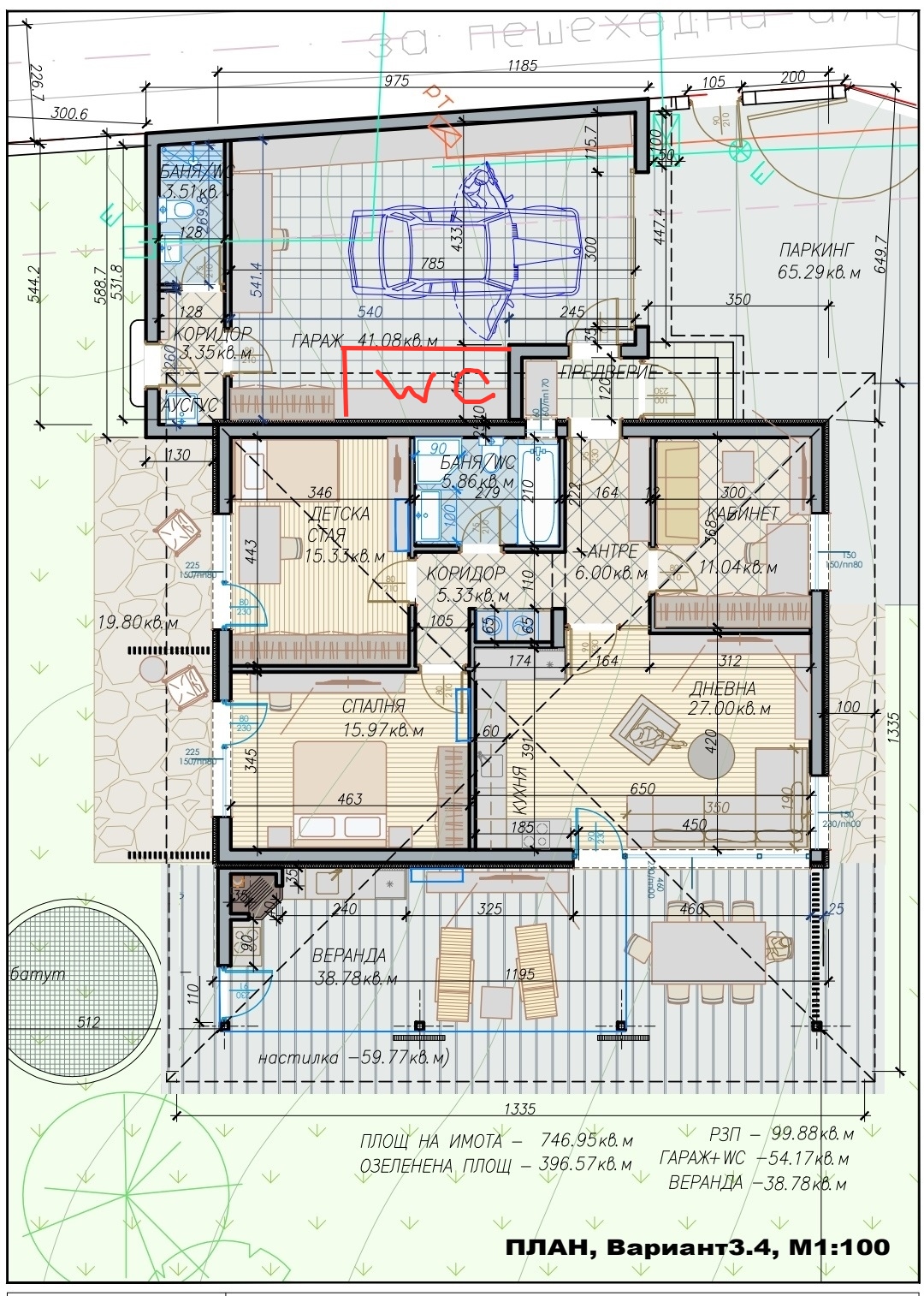П.П.Пробвахме го и така, пак не става, защото се губи възможността за обръщане и маневри на паркинга, колкото и в момента да е тясно и трудно, но все пак го има, ако си майстор на паркирането и маневрите на зад.. Реално се печелят 2.7м дълбочината на двора, за сметка на загубения гараж и паркинг от което в случая не виждам смисъл. Следователно моравата ще остане по малка и ще се надявам да купя имота пред моя, ако го продават някога.. Добавих и малката тоалетна с баня в преддверието срещу входа за да има и втора малка баня с тоалетна за ползване от към двора и къщата.. Надявам се, че ще свикна с компромиса в размера на двора пред верандата или в най-добрия случай да купя единия от двата имота срещу моя или преди него за да си реша проблемите с двора и паркинга в идеалния вариант.. Мисля, че повечето забележки ги коригирах, но ако виждате нещо друго, задължително ще го взема предвид..