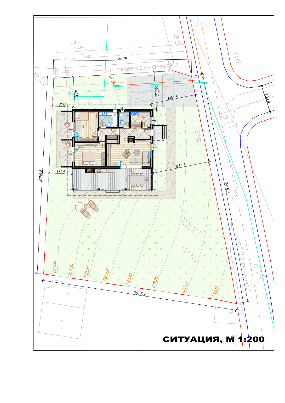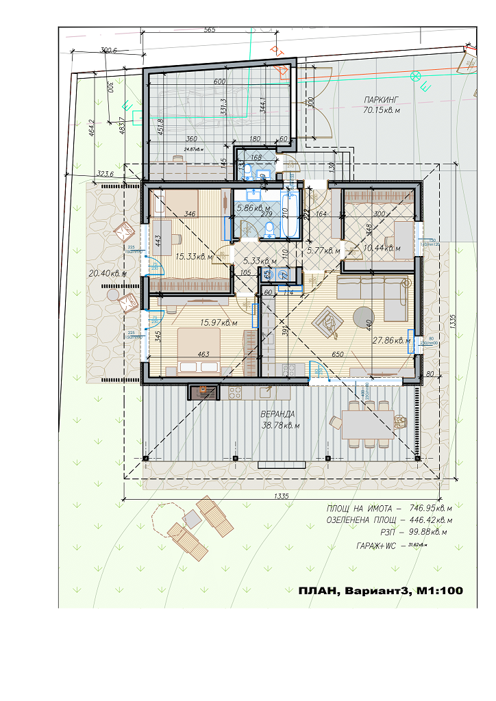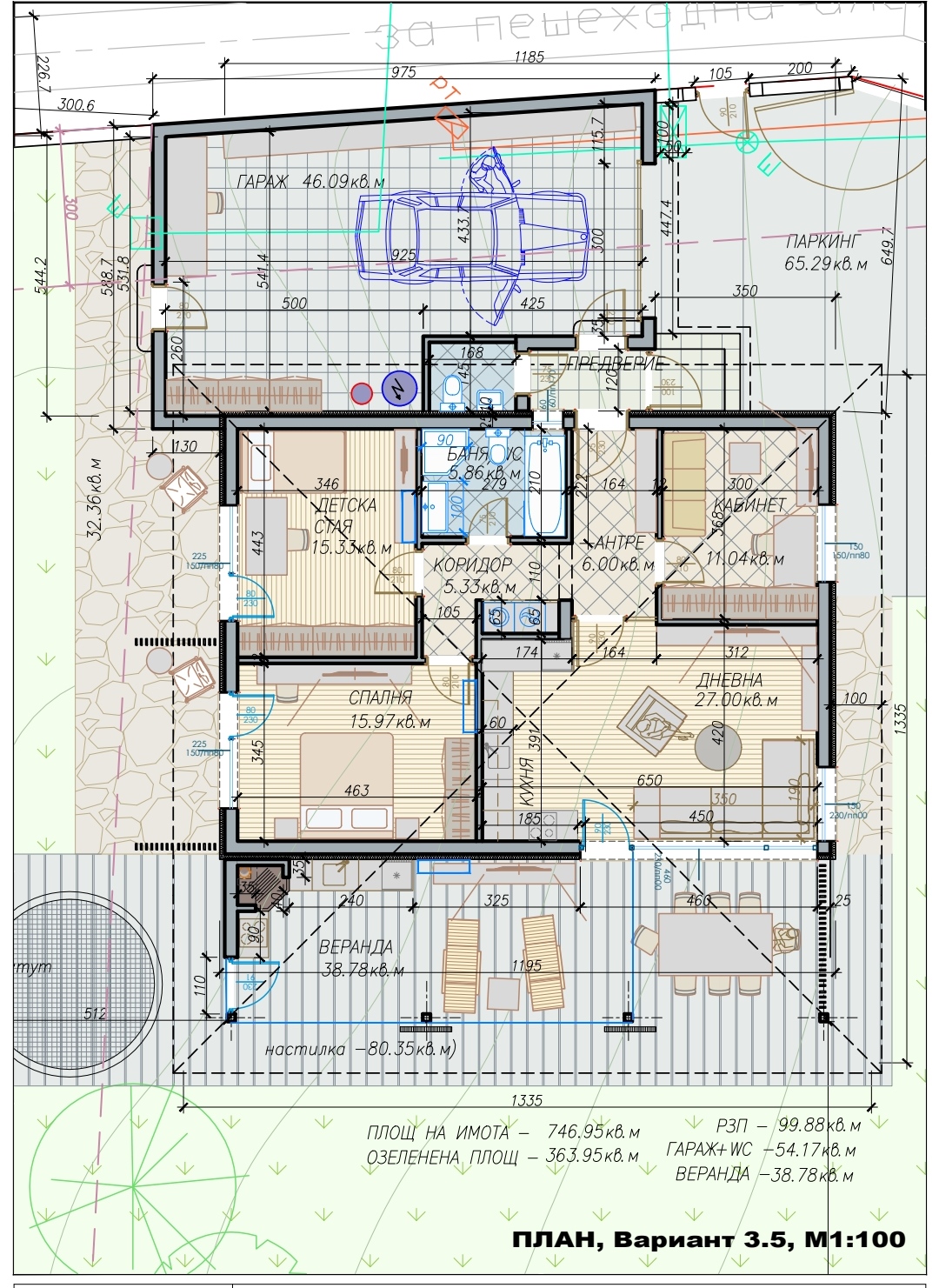 П.П.Пробвахме го и така, пак не става, защото се губи възможността за обръщане и маневри на паркинга, колкото и в момента да е тясно и трудно, но все пак го има, ако си майстор на паркирането и маневрите на зад.. Реално се печелят 2.7м дълбочината на двора, за сметка на загубения гараж и паркинг от което в случая не виждам смисъл. Следователно моравата ще остане по малка и ще се надявам да купя имота пред моя, ако го продават някога.. Добавих и малката тоалетна с баня в преддверието срещу входа за да има и втора малка баня с тоалетна за ползване от към двора и къщата.. Надявам се, че ще свикна с компромиса в размера на двора пред верандата или в най-добрия случай да купя единия от двата имота срещу моя или преди него за да си реша проблемите с двора и паркинга в идеалния вариант.. Мисля, че повечето забележки ги коригирах, но ако виждате нещо друго, задължително ще го взема предвид..