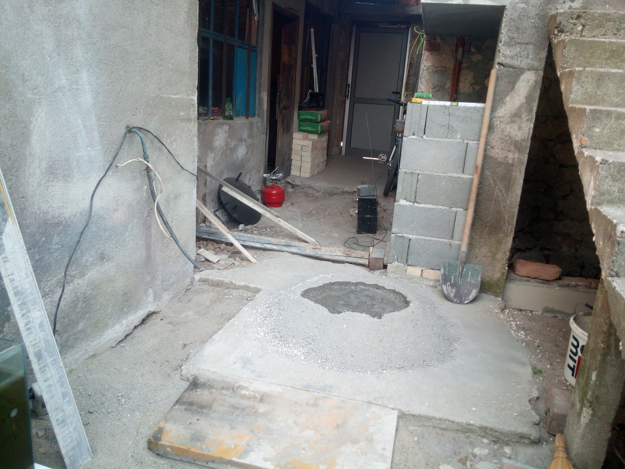 Долу където беше старият вход иззидах с циментови тухли, като преди да ги засипя със земя да сляга ги шпакловах и намазах с хидроизолация, няколко месеца докато слягаше и когато беше дъждовно преди да залея с бетон пътеката, влага избиваше не през стената, а от долу под нейната основа и избиваше на пръстта, чак си мислех че ми пропуска канализацията, но се оказа че е от дъжда понеже много вода се събира там и попива на долу. Почнах лека по лека да циментирам пътеките около къщата където са само по земя и камъни и в бъдеще ми предстои да ги залея на цяло с бетон и мрежа. Долу по цокъла на каменния зид му изронвам и почиствам фугите набивам 10-ка рифел, слагам платна и заливам с разтвор цимент и пясък, някъде и с бетон по рядък да влиза на всякъде та дано малко да заздрави каменната зидария, после това на горе ще го измажа с цимент и пясък. Изкорених кривите сливи дето ме дразнеха и от снимката се вижда как оградата е стъпила върху нищото та и нея я подсилвах.